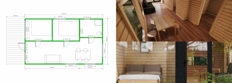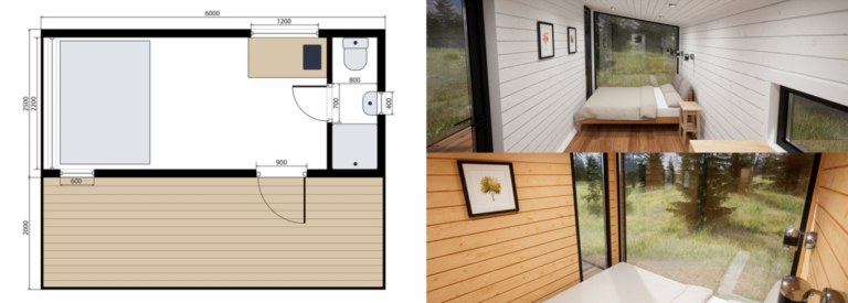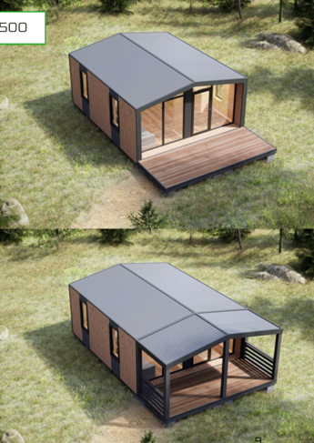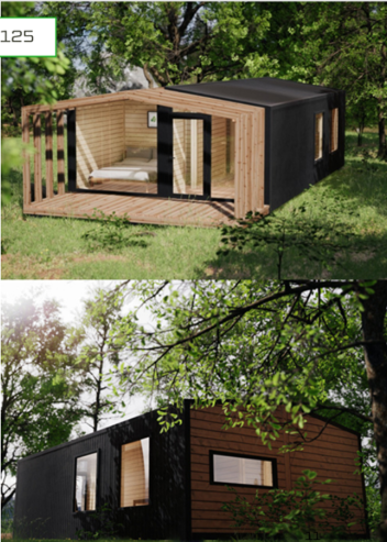 Die Häuser unten ist im gleichen Stil wie die winzigen Häuser (Tiny House), nur viel größer im Design. Sollten Sie andere Einrichtungswünsche haben, ist dies jederzeit verhandelbar und realisierbar.