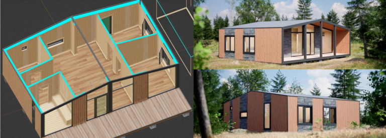Dieses Projekt kann aus einem Rahmen, CLT -Panels und geklebten Balken hergestellt werden.